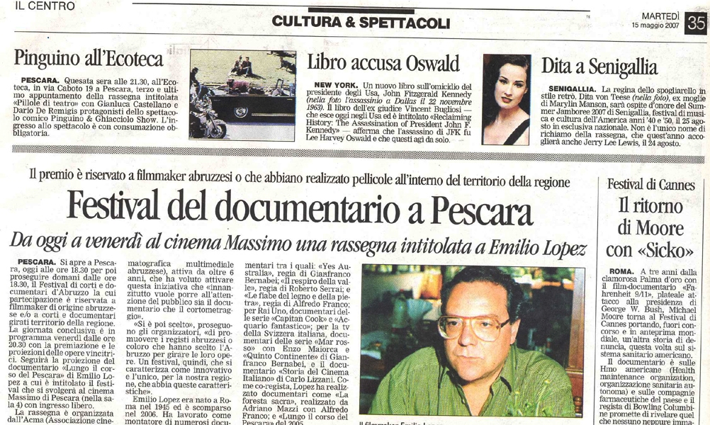 | 5 maggio | 2 righe | Pescara: 2° Festival del documentario d’Abruzzo-Premio Emilio Lopez | |