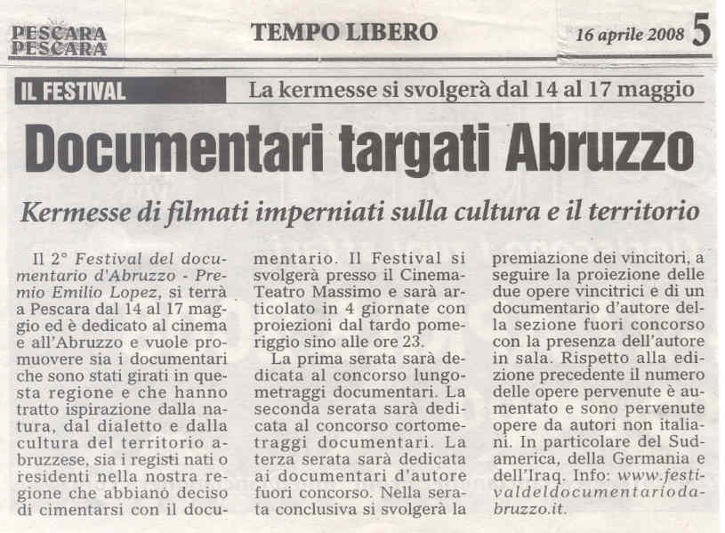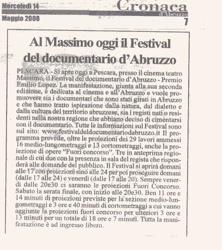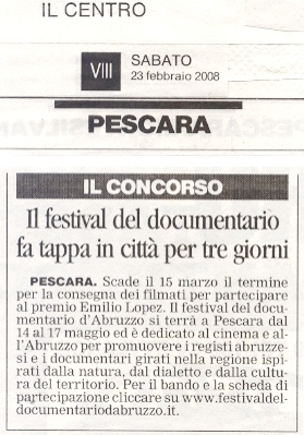 | 21 febbraio | Pescara on line | Festival del documentario Abruzzo | |