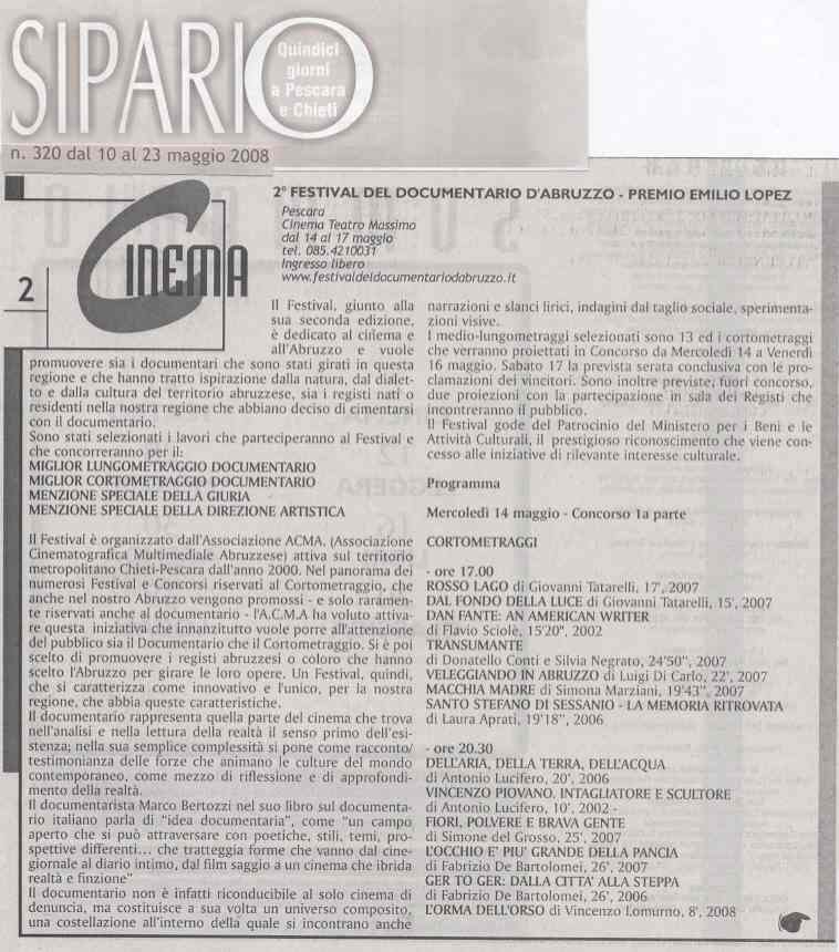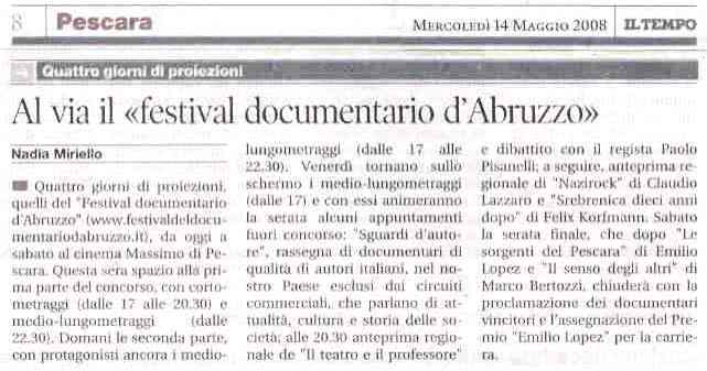 | 4 maggio | Leggimi | 2° Festival del Documentario d’Abruzzo 14 – 17 Maggio 2008 | |